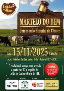 O Martelo do Bem é uma realização da Leilões Araucária, com apoio da King Farm, e faz parte dos eventos oficiais em prol do Hospital do Câncer de Londrina, referência no tratamento oncológico em todo o Norte do Paraná.