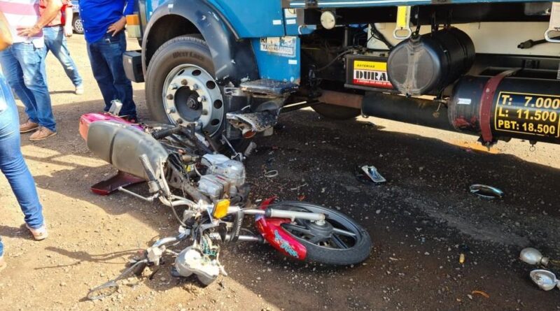Jovem fica gravemente ferido em batida entre moto e caminhão em Jandaia do Sul