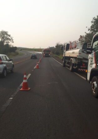 O motorista teria perdido o controle da carreta, resultando no capotamento. O veículo ficou “escorado” em uma árvore. Até a publicação desta reportagem, equipes tentavam retirar a carreta do meio da vegetação.