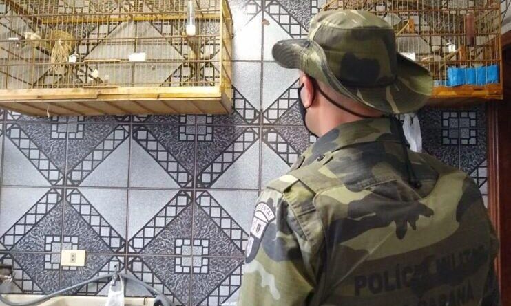 Polícia Ambiental resgata mais de 200 pássaros mantidos em cativeiros na região