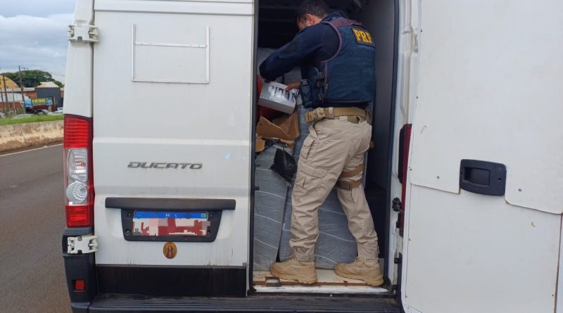 PRF apreende em Paiçandu furgão abarrotado com cigarros eletrônicos e smartphones