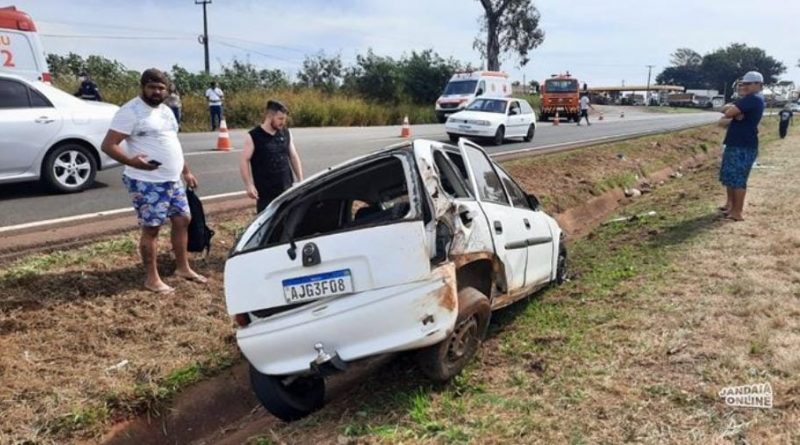 Veículo com placas de Mandaguari capota na BR-376, em Jandaia do Sul